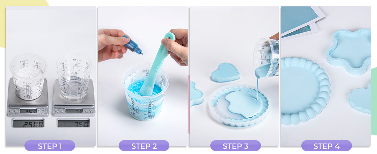 Pour the mixture into your chosen molds, tap the edges to release any trapped air bubbles, and let it sit for 20-30 minutes. Once cured, de-mold your creation to reveal a beautifully crafted piece.